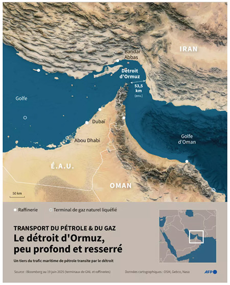 Situé entre l’Iran et le sultanat d’Oman, ce passage stratégique qui relie le golfe Persique à la mer d’Oman, constitue l’une des artères essentielles du commerce énergétique mondial. Chaque jour, y transitent des pétroliers transportant jusqu’à 18 millions de barils, soit environ 20% du commerce mondial d’hydrocarbures.