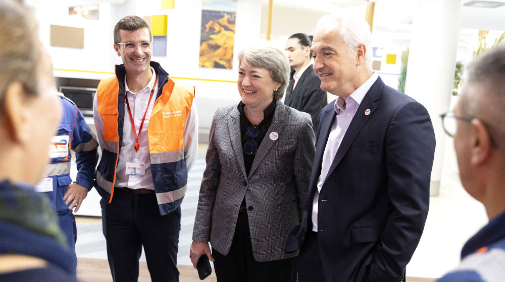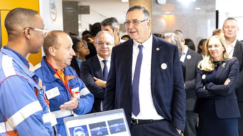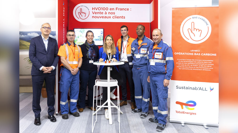 De gauche à droite : Mickaël DUMONT, chef du Service Climat & Neutralité Carbone, Agathe REUBREZ, responsable Développement durable, Jérôme DÉCHAMPS, directeur Réseau et Solutions de Mobilité, Éric VAISSIÉ, directeur Technique et HSEQ (Wash) et Guillaume LARROQUE, directeur Europe, Outre-Mer et Caraïbes.
